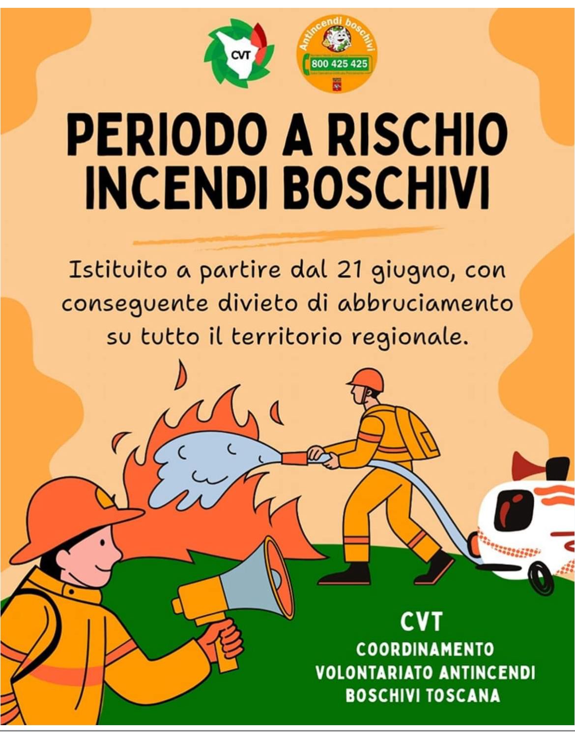 Dal 21 giugno fino al 31 agosto entra in vigore il divieto di abbruciamenti e il divieto di accensione fuochi per il periodo a rischio incendi boschivi.